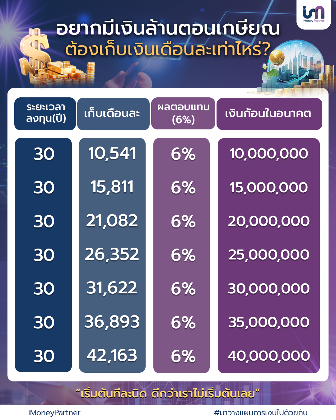 👉 เริ่มเก็บวันนี้จากเงินหลักพันบาท อีก 30–35 ปีข้างหน้า คุณจะขอบคุณตัวเองที่ไม่ปล่อยให้เวลาหายไป